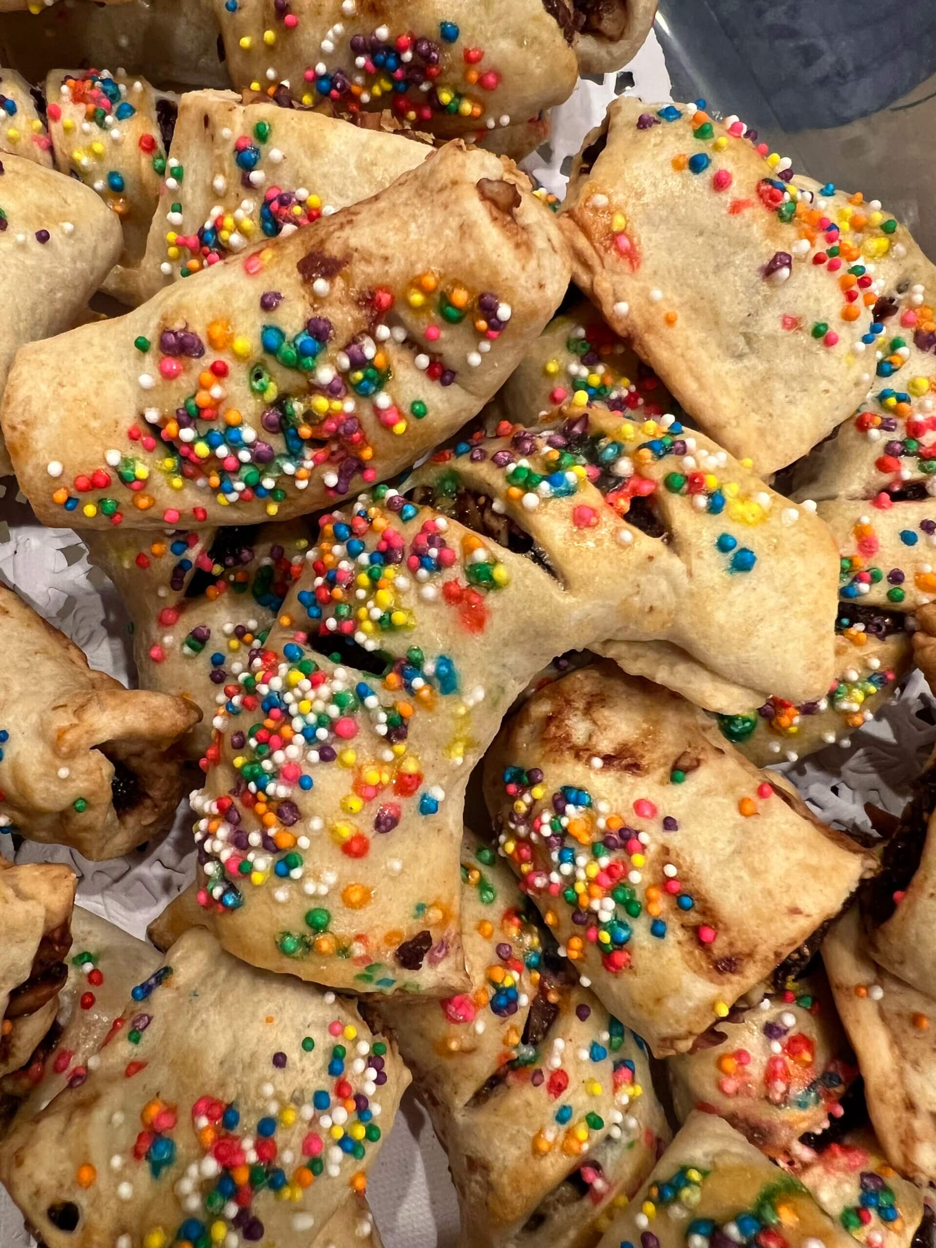 Step 5: Place cookies on a greased baking sheet. Egg wash the top of the cookies and sprinkle on the colored sprinkles. Bake about 20 minutes or until the bottoms are brown.
